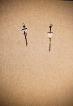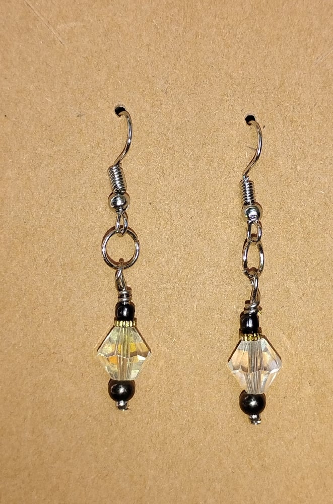 Crystal and black beads, French hook with rubber stoppers on back to prevent slippage.