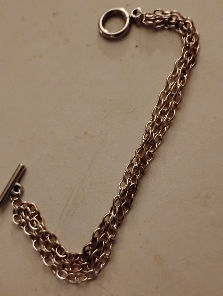 Three Chain segments combine to make a full 6.5 inch bracelet. Lightweight, with a toggle clasp.